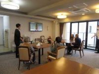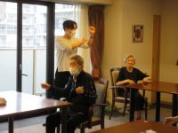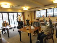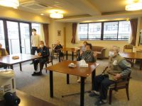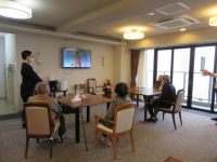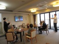 本日、emomeさんによるレクのお試し行いました。3階のご入居者様を中心に歌に合わせての体操、文字の色を答える、イントロから曲名を答える等のレクでしたが、参加されたご入居者様は真剣にところどころやや失敗をされながら楽しまれておりました。