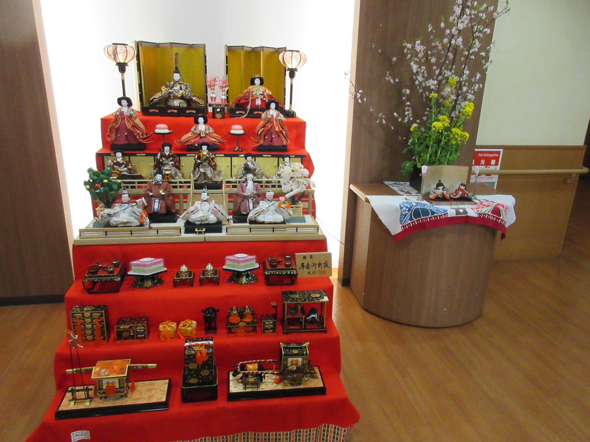 ホールにお雛様を飾り