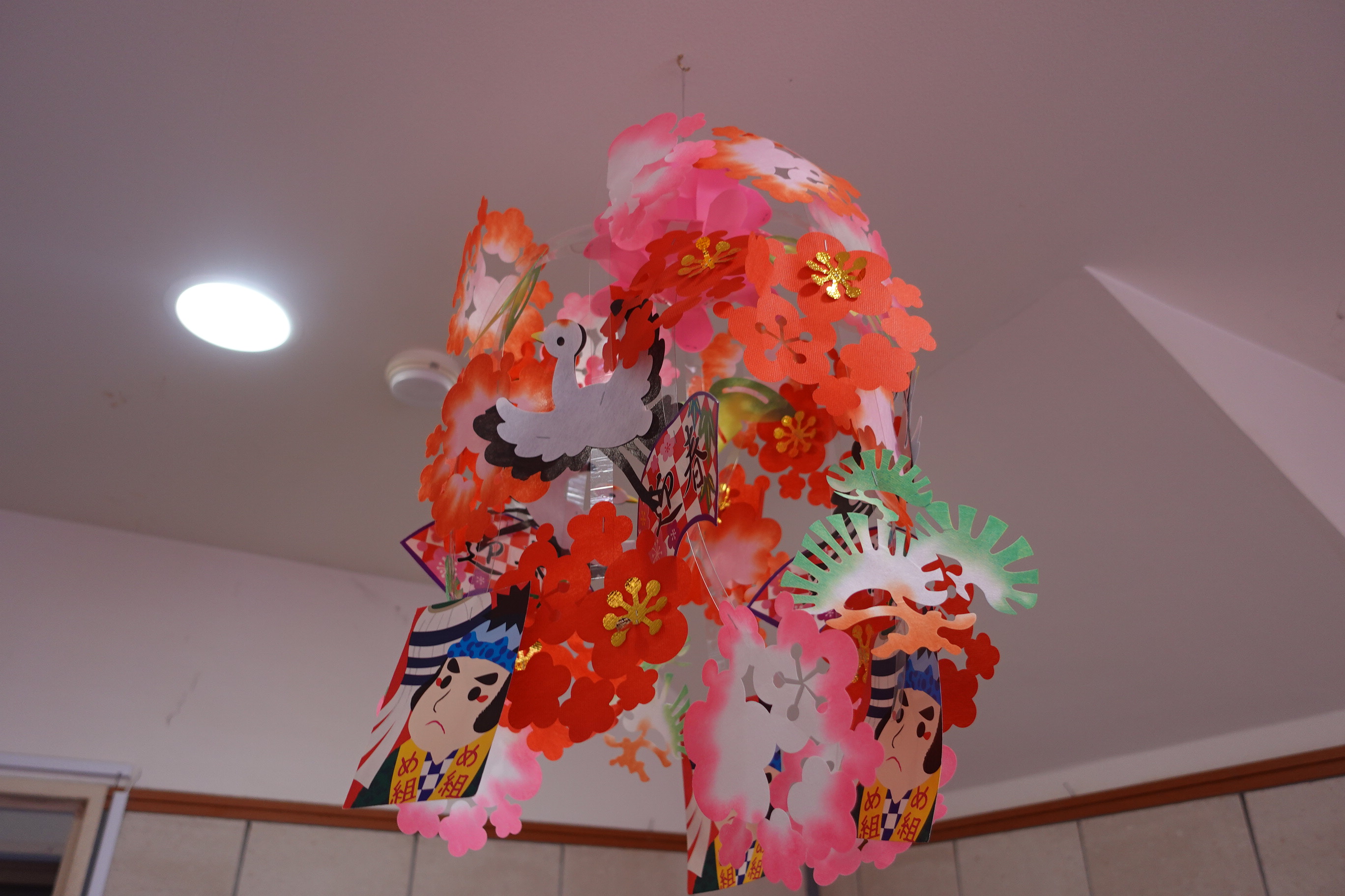 お天気に恵まれた新年で何よりです。館内もお正月ムードで「春の海」の音を聞きながらご入居者様は「おせち料理」を召し上がり午後は昔懐かしいお正月のレクリエーションを予定しています。