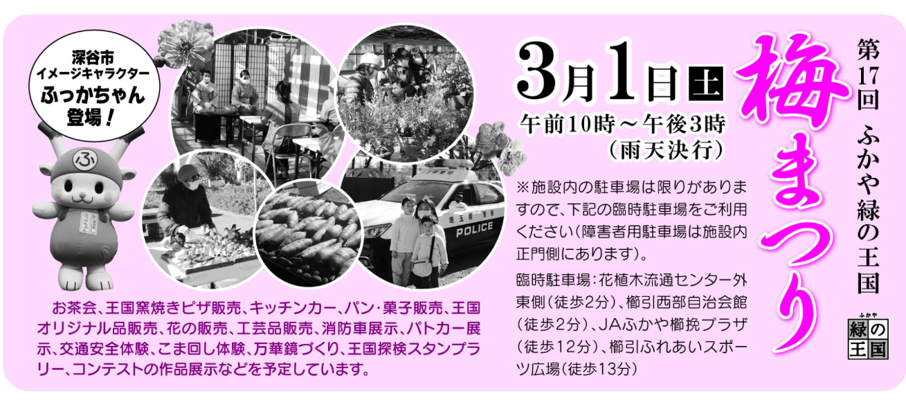 深谷周辺のイベント情報を探していたところ”ふかや緑の王国「第17回梅まつり」”を見つけました!