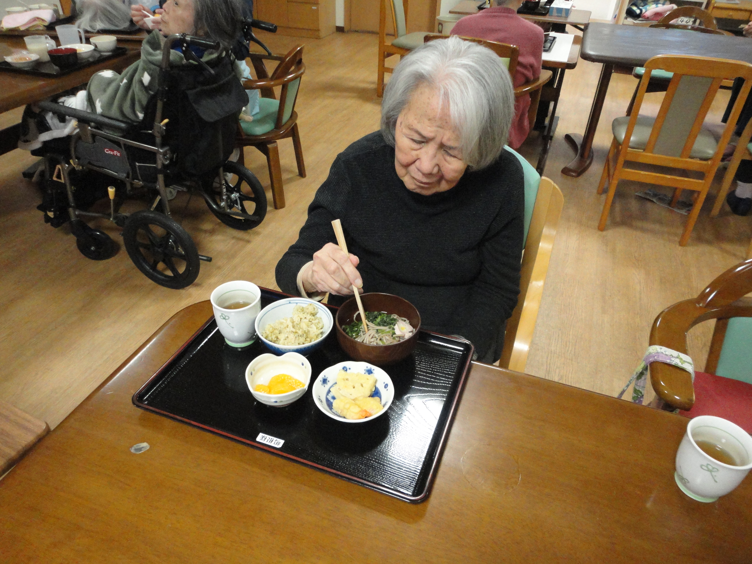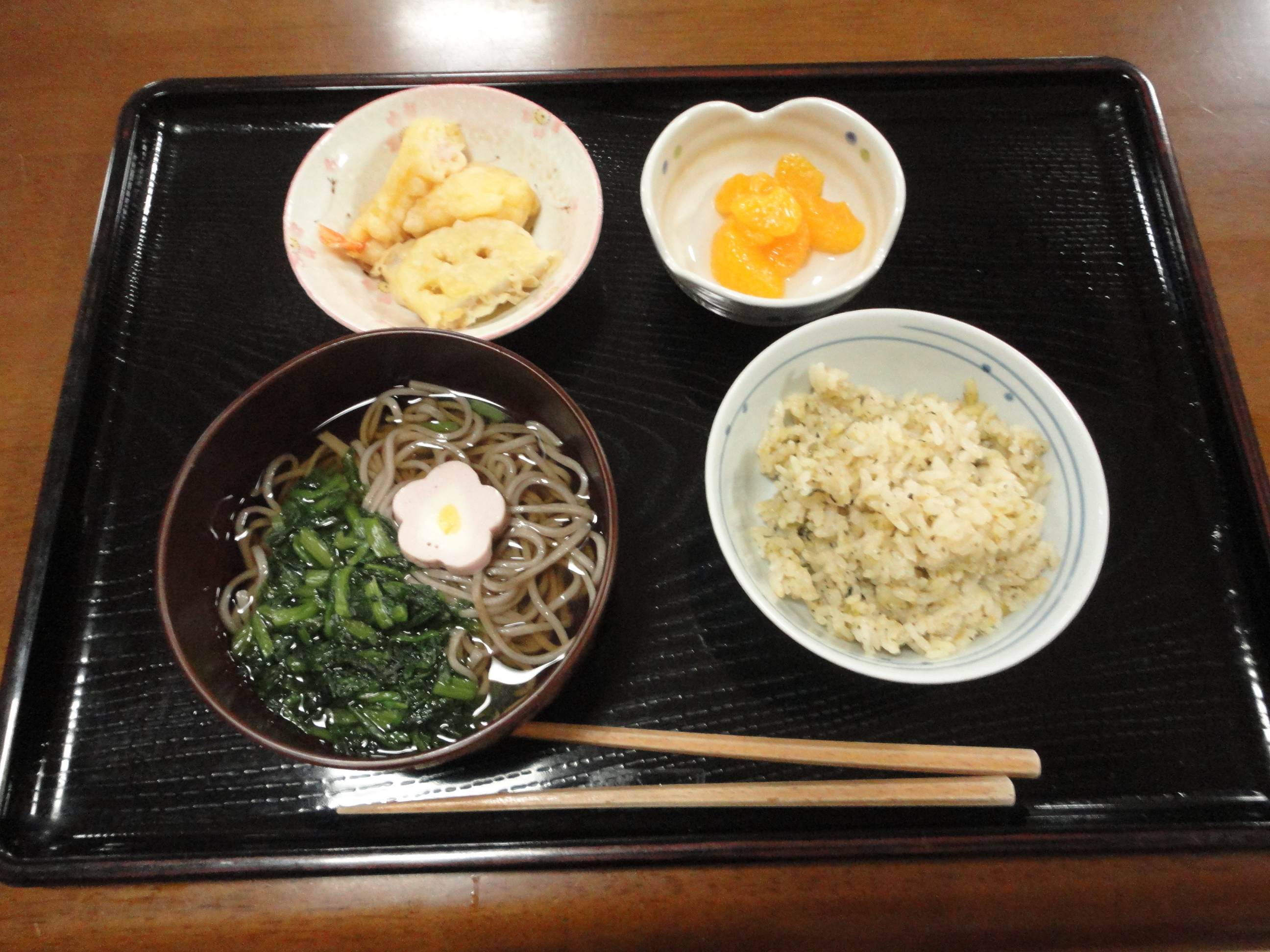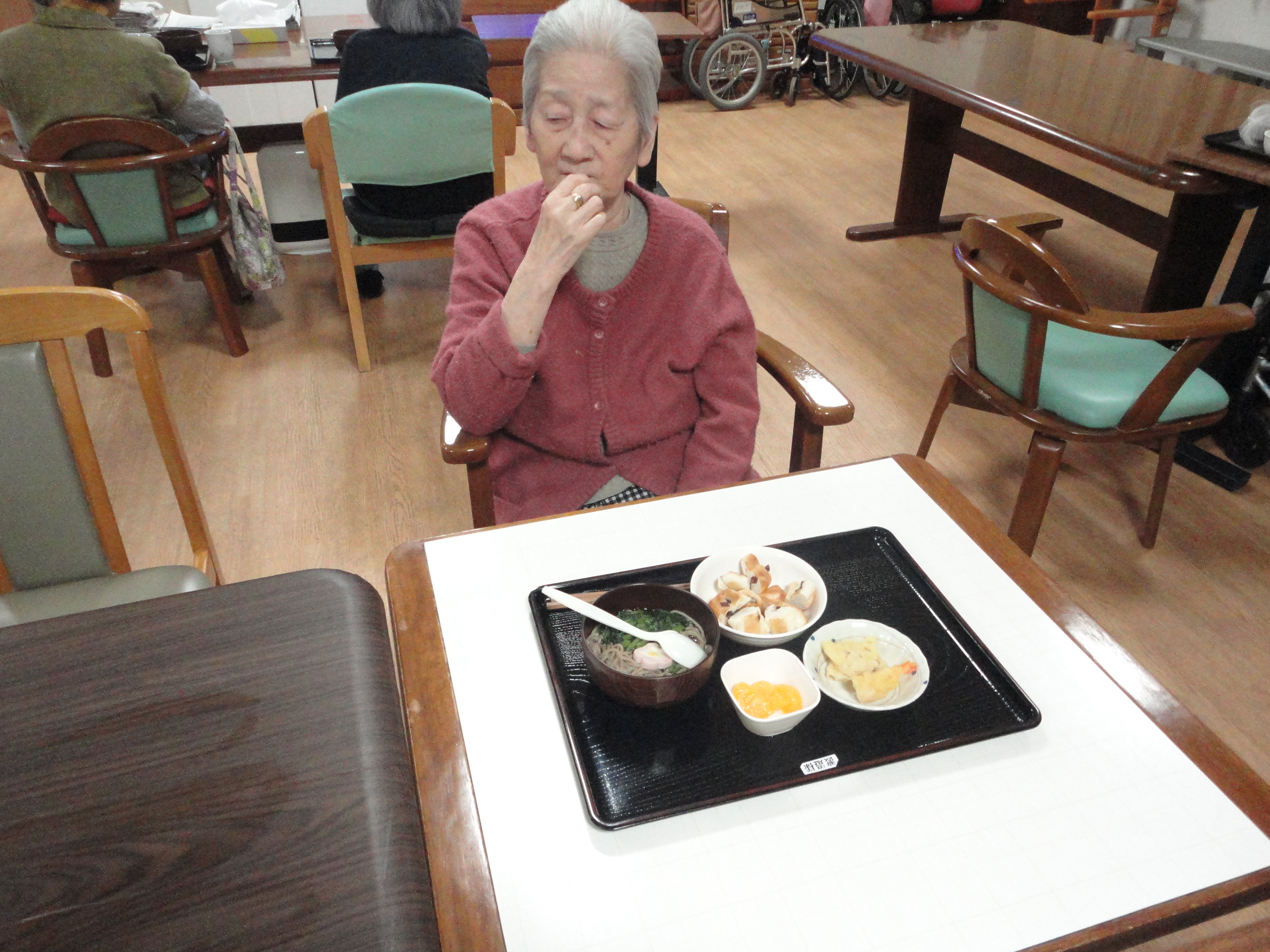 夕食では毎年恒例の年越しそばを提供させて頂きました。