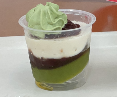 小豆の甘みとほろ苦い抹茶クリーム、そしてなめらかなプリンの食感が混ざりあってなんとも言えぬ美味しさに仕上がっていたそうです(試食した職員の感想より)。