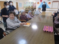 本日は脳トレ(12月31日紅白歌合戦にちなんで赤い物・白い物をなんでも良いので上げて頂く)をしました。赤い物は以外に少なく皆さん悩んでおりましたが辺りを見渡して赤い物見つけると「ポインセチア」等答えておりました。白い物は多く、沢山出ました。1年間お疲れ様でした。良いお年をお迎えください。来年もよろしくお願いします(^-^)