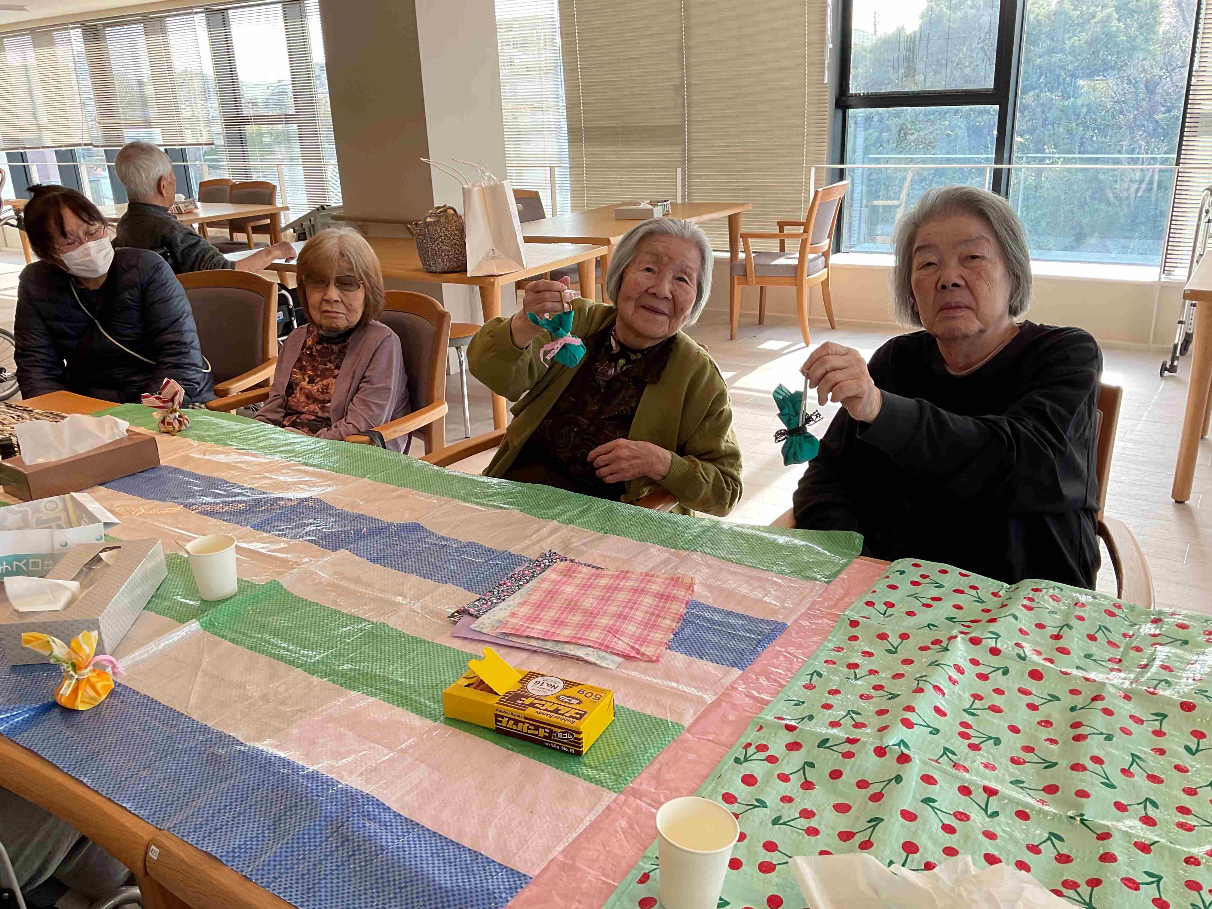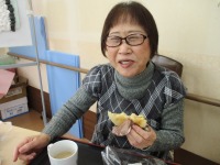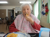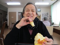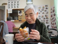 普通バレンタインデーと言えばチョコですが、1階では昼食に菓子パンを食べていただきました。