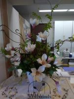 お花といっても造花でフロワのお花を入れ替えました。本物と思ったご入居者様は匂いを嗅いでいました。造花と知って「今はよく出来てるわね、何ていうお花だっけ」とスマホで調べると「木蓮」と出ました。「え~、今そうやってお花の名前が出るの。驚いたわ」と関心されていました。お花の話題で会話も弾みました(^^♪