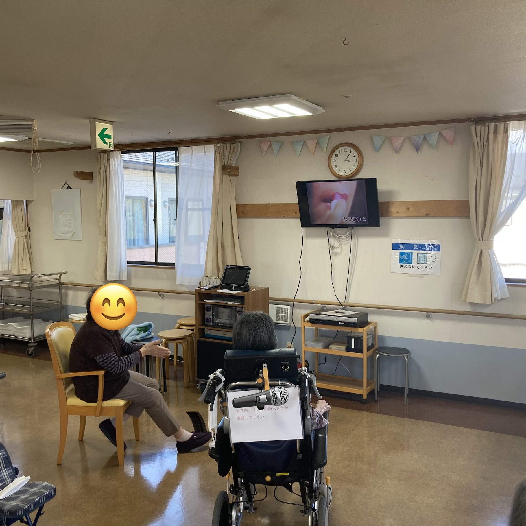 本日のレクは音楽鑑賞とスタッフによる手足の運動レクを実施しています