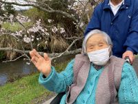 こんにちはデイサービスです。本日も利用者さまをお連れして桜見学ドライブに行ってきました。あいにくの雨の為、車窓からの見学でしたが満開の桜をご覧になり皆様「きれいだねー』