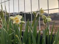 皆さんとても仲良しです。そんな暖かいはぴねグループホームの庭に水仙の花が咲き始めました。