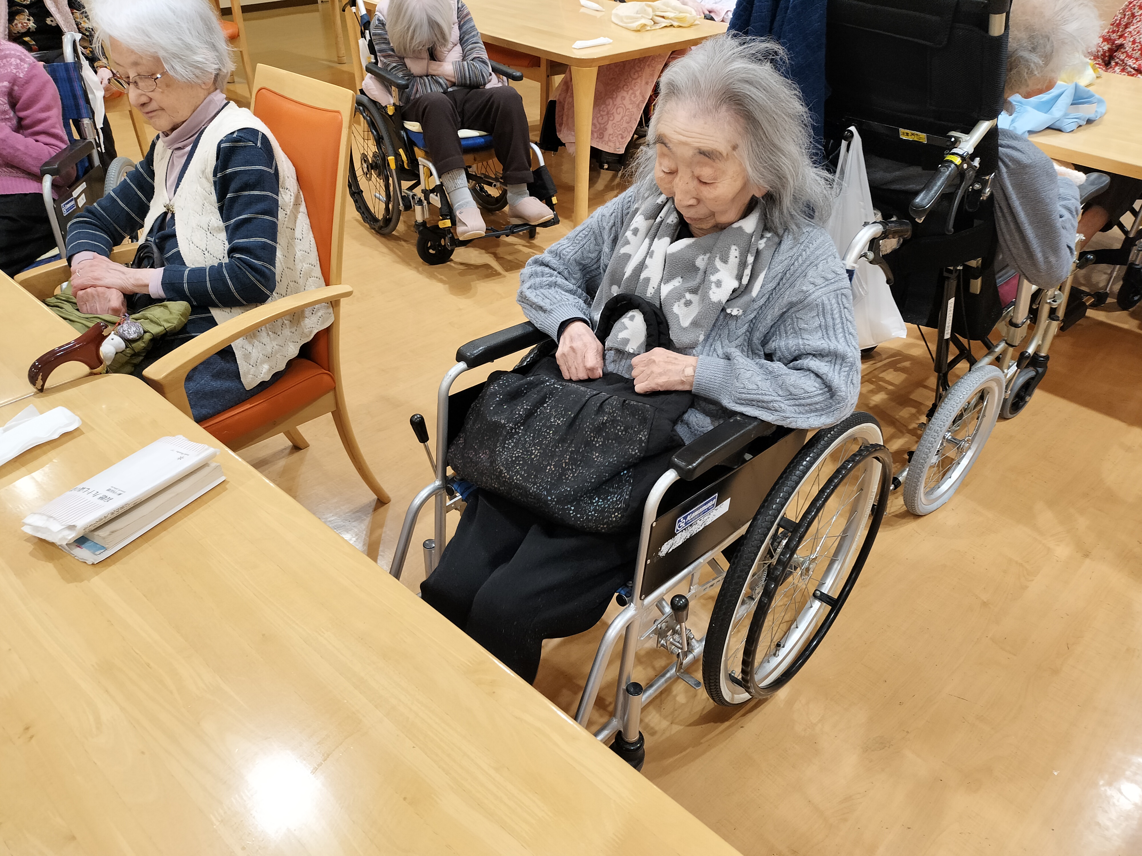 こんにちは、デイサービスです。今日はお昼休みにご利用者様にも手伝ってもらってひな人形を飾りました。1年ぶりのひな人形に職員も飾り方を忘れてしまい、「お雛様は右と左どっちだっけ?」「お内裏様の小物が足りないけどどの箱に入ってるんだっけ?」と笑い声溢れるにぎやかで楽しい時間となりました。無事に飾り終えた後は写真撮影時間となり、笑顔の素敵な写真がたくさん撮れました(*^-^*)