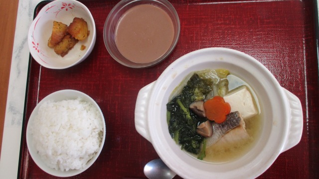*ご飯 *石狩鍋風 *じゃがバター *小豆ミルク寒天