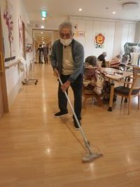 今日は天気も良く、入居者様と一緒にお掃除と洗濯干しを行いました。