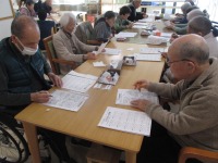 こんにちはデイサービスです。今日のレクは今年最後の脳トレを行いました。「どこの都道府県?」というプリントをお渡し、地図や都道府県の有名な物や特産品などのヒントをもとにどこの県か当ててもらう脳トレを行いました。もみじ饅頭、清水寺、なまはげ、などのヒントから「あ!それは広島県だ」などと皆様とても元気よく答えてくださいました。他にもプリントには載ってない都道府県をお聞きすると皆様どんどん答えてくださり、見事47都道府県すべて答えてくださいました。今年最後の脳トレもみなさま楽しそうに参加されにぎやかな一時間となりました(^^♪