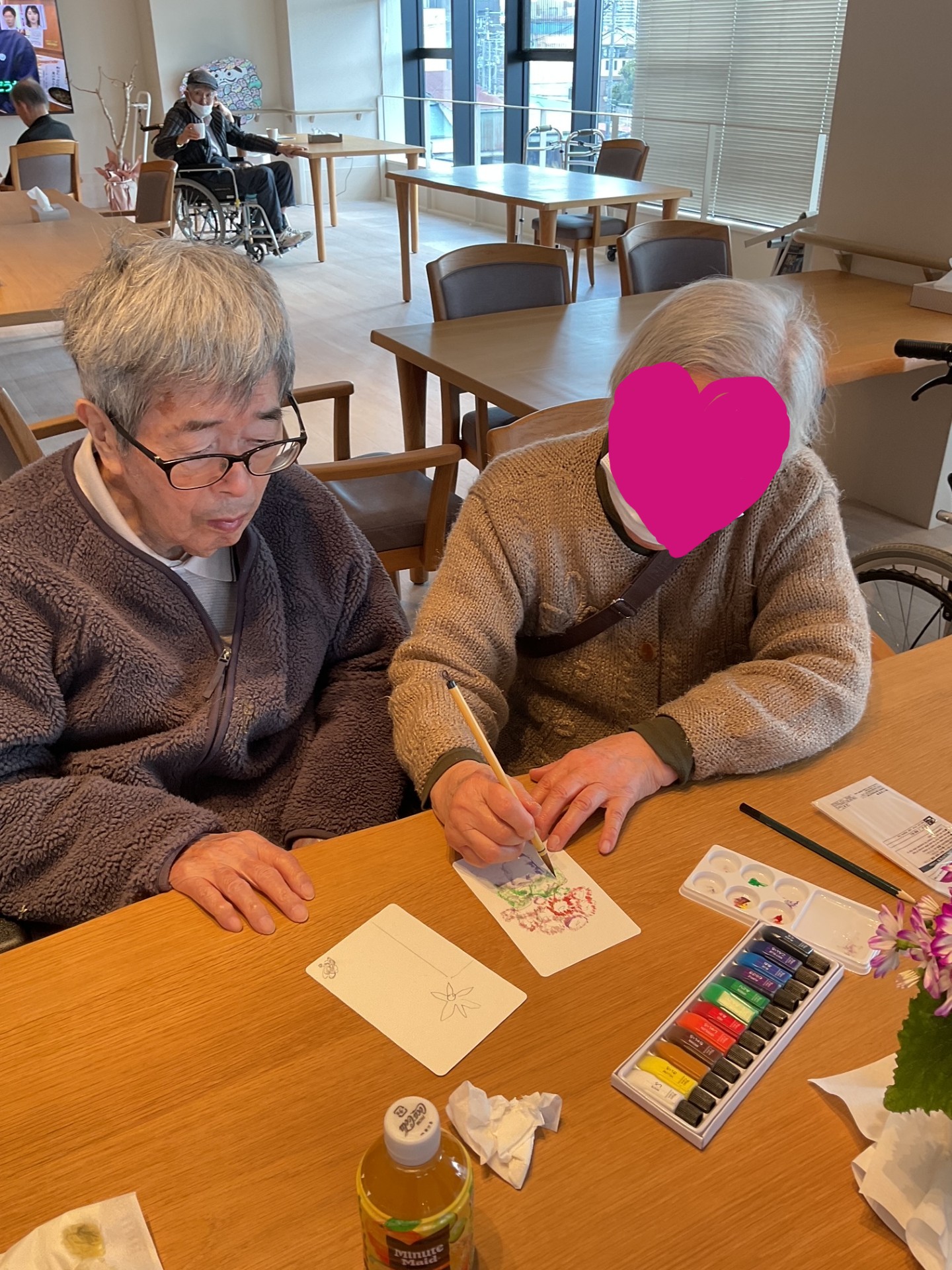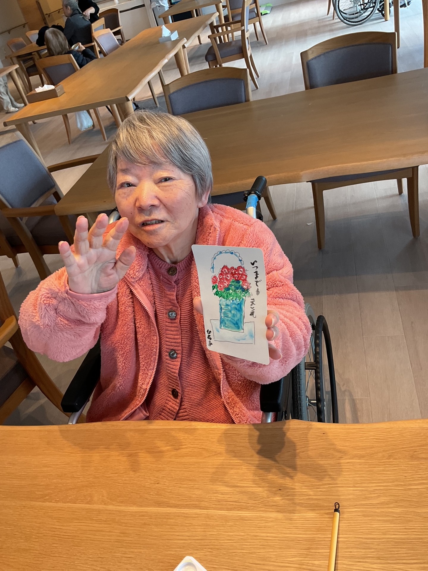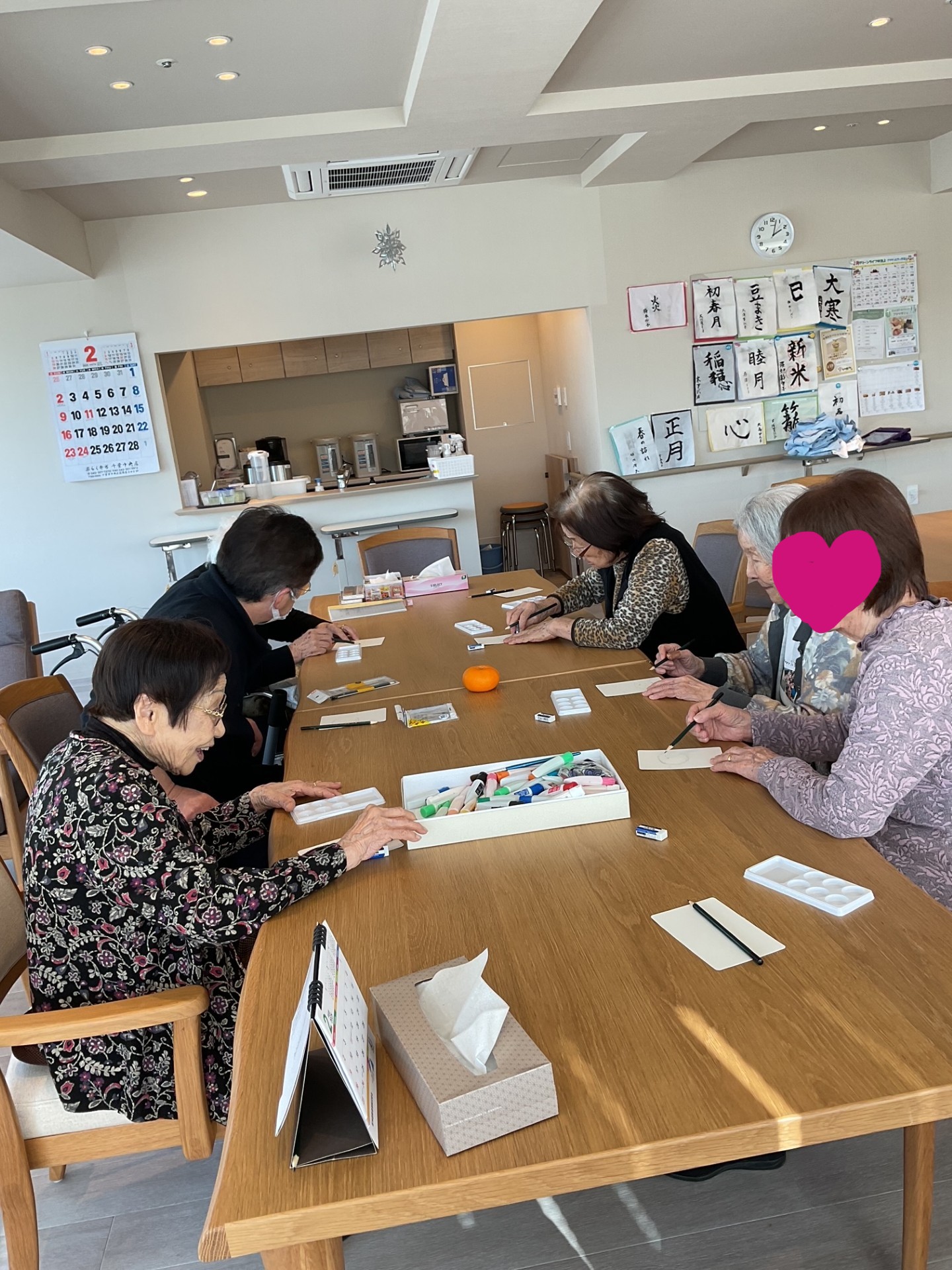 昨日、入居者様起点でスタートした「絵手紙」レクの記念すべき第一回が行われました!