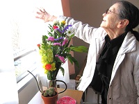 お買い物の代行サービスでお花を頼まれた入居者様。
