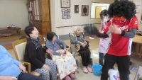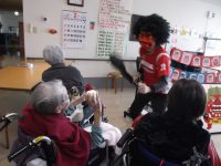 午後のレクとして人気が高いのがカラオケです。皆様、昔を懐かしんで一緒に口ずさまれています。