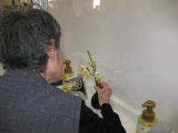 「きれいね~、可愛いね~」と言われながらナンテンの実とスイセンをとても嬉しそうに水を入れ替えておられました😊