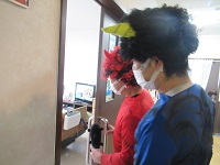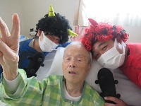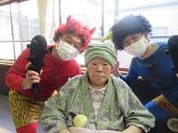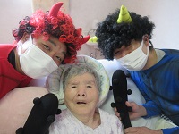突然の鬼登場に驚く入居者様や「鬼退治するぞー!」とガッツポーズされる方まで(*^^*)
