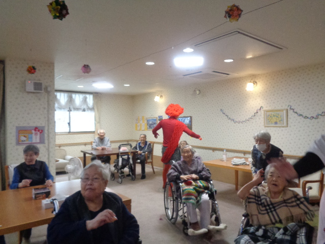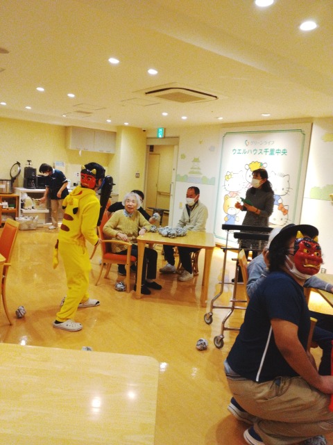 この鬼さん、いつもいつも元気なムードメーカーで他の入居者様を元気づけて下さいます。