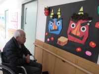 本日は2月のデイルームに貼る用の絵を利用者様に切って頂きました。普段は職員が切っていましたが、11名の利用者様に切ってもらった為、30分くらいで終わりました。ありがとうございました。「俺こうゆうの好きだからまた言ってね。」と言って頂きました。時間が余った為、残りの時間は「とんち文字クイズ」をしました。