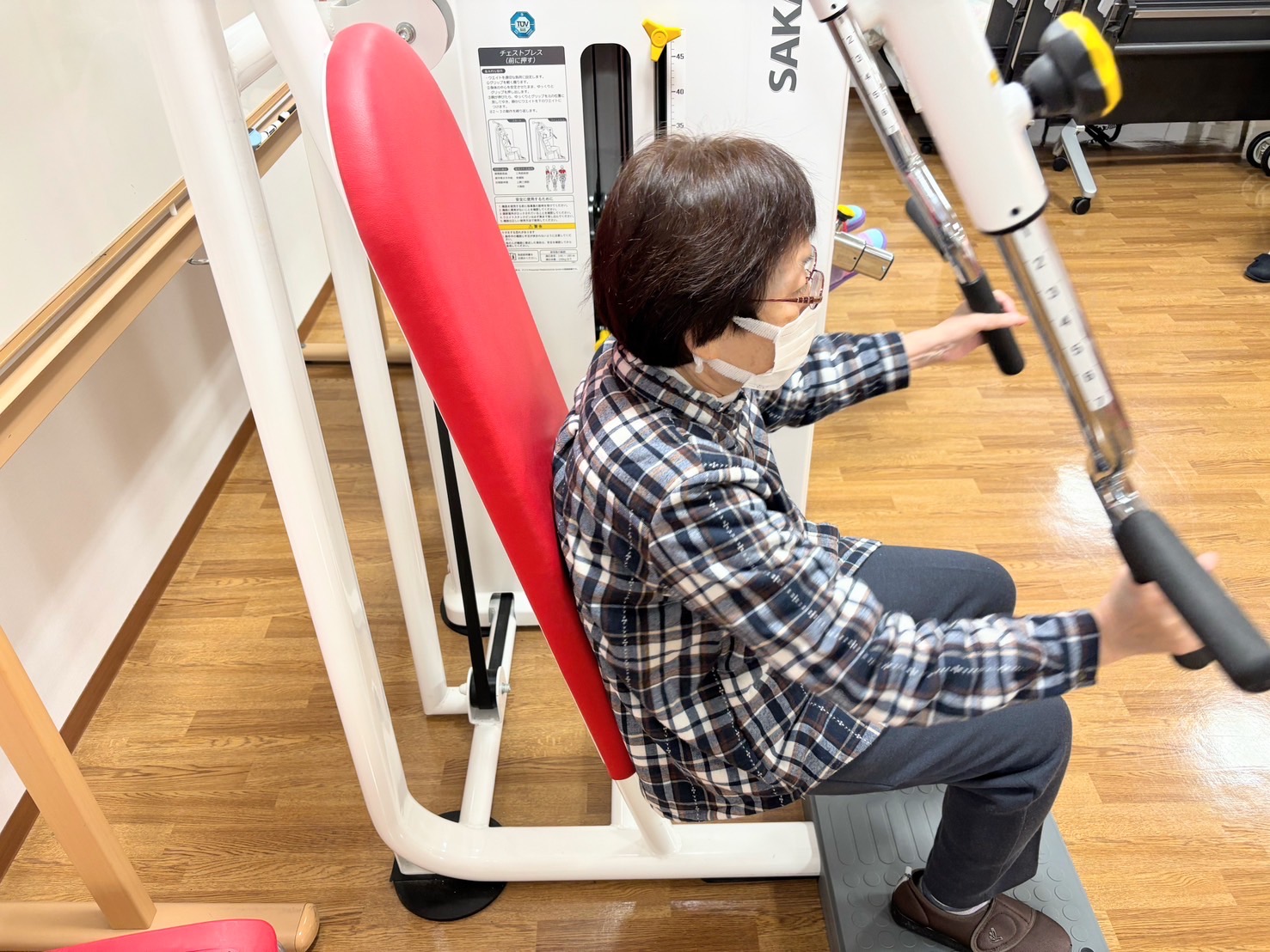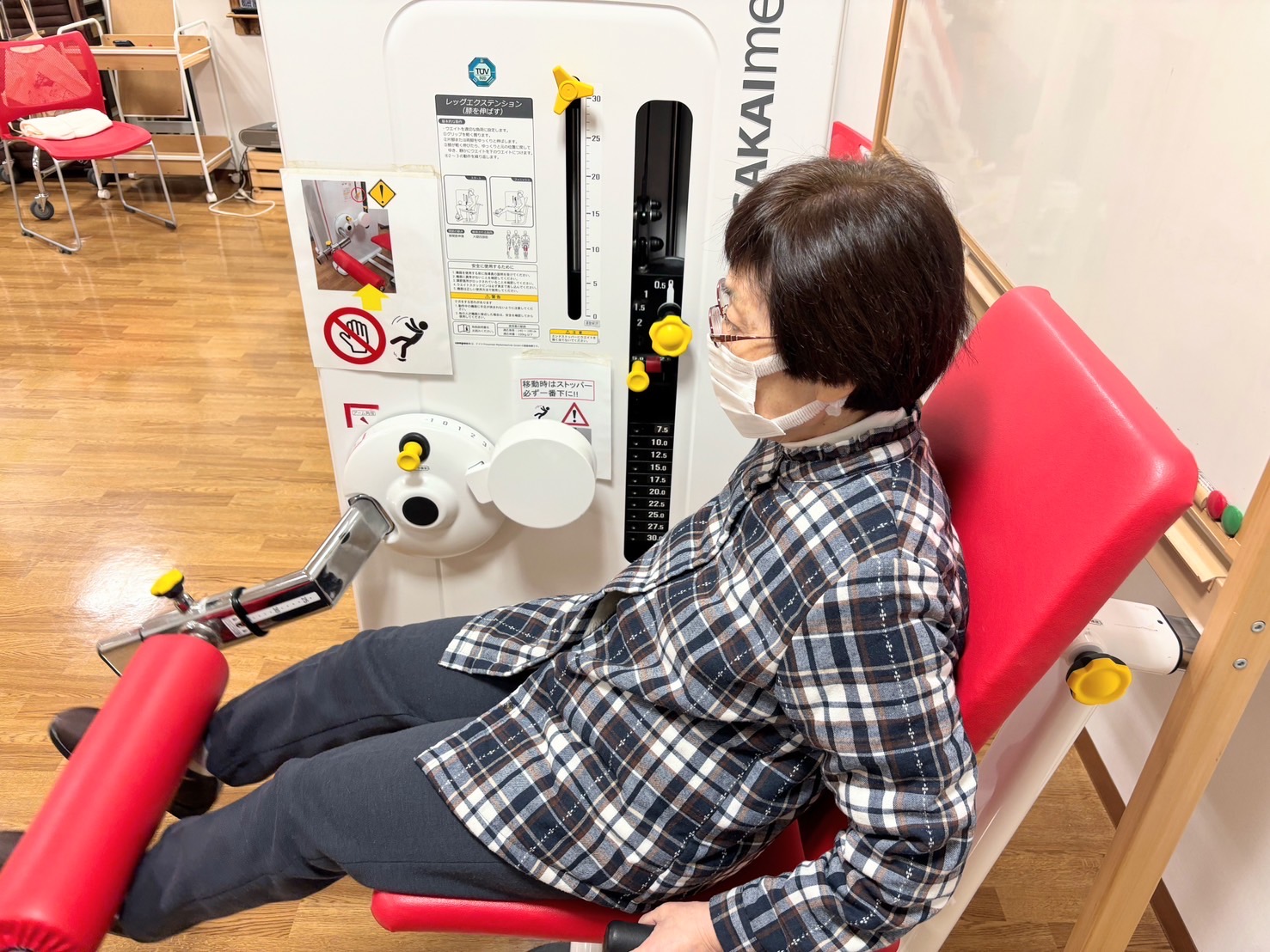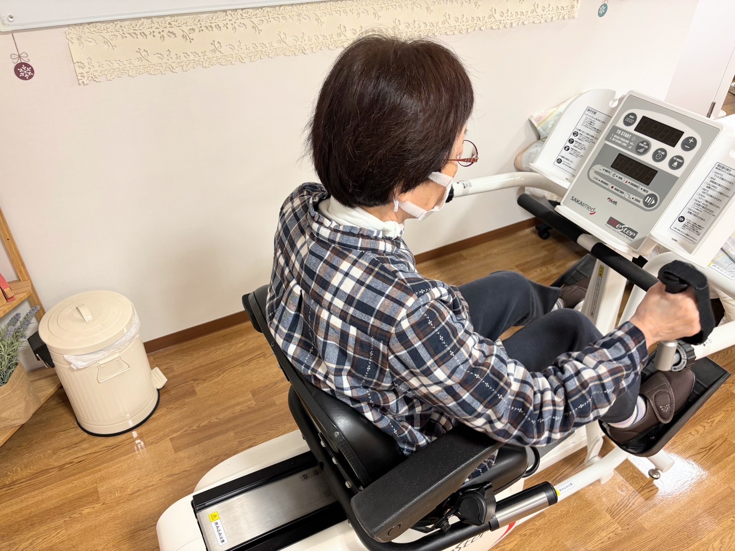 ちょっとした隙間時間に、ご利用者様とスクワットをしています。