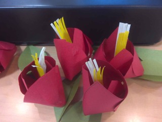 こんにちは。デイサービスです。今日は「だるま」のちぎり絵を行いました。だるまの絵が描かれた画用紙に赤青黄色の色とりどりの折り紙をちぎってのりで貼っていただく作業ですが、みなさん慣れた手つきで集中して取り組まれ個性豊かなだるまが完成しました。「こんな可愛いだるまが完成したよ」「細かい作業で疲れちゃったよ」などとみなさま笑顔で仰っていました。ちぎり絵は手先を使うので脳の活性化にもなるおすすめのレクです。みなさま次回のちぎり絵を楽しみにしているご様子でした。