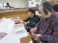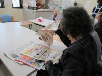 入居者様は、1月のカレンダーのぬり絵をしたり、オセロをしたり、新聞を読んだりして過ごされていらっしゃいます。