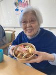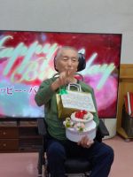 今日は、12月の誕生日会を行いました。女性利用者様と男性利用者様のお二人でどちらも年齢は秘密です。男性の方は「長生きできるよう頑張ります!」と話されていました。デイサービス恒例のイルカのケーキは好評で女性の方が「可愛らしいケーキで食べないで見ていたいわ」と言われていました。今年の誕生日はこれで終わりですがまた来年も誕生日にケーキを作って皆さんに召し上がって頂きたいと思います(*^▽^*)