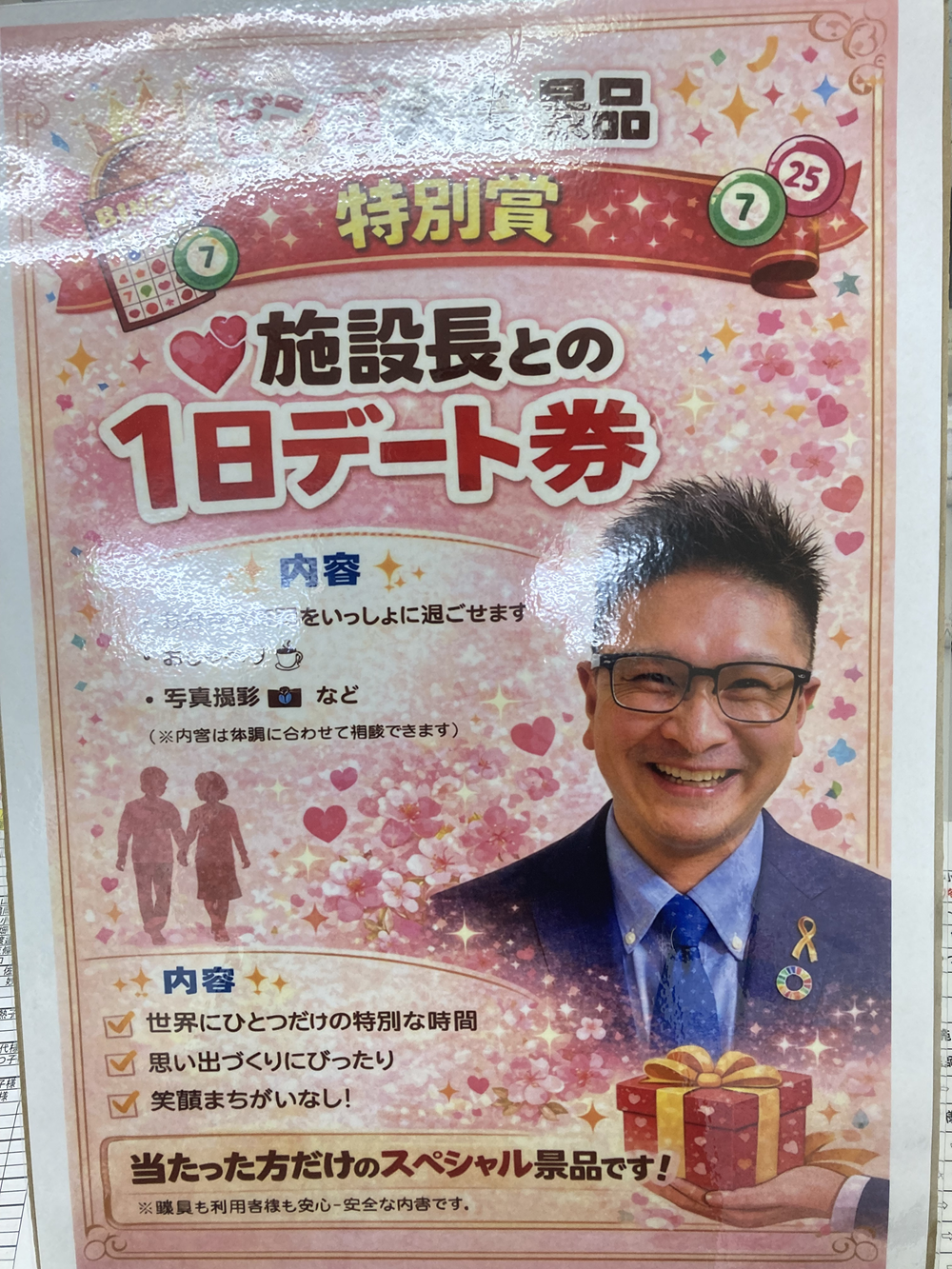 そして…なんといってもこの企画限定の1点モノ【施設長との1日デート券!】です(笑)