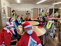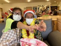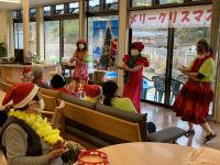 クリスマスらしい歌を唄ったり、スタッフの出し物、フラダンスまで