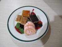 4種のケーキに甘酸っぱいべリーソースが添えられていてクリスマスにピッタリ‼