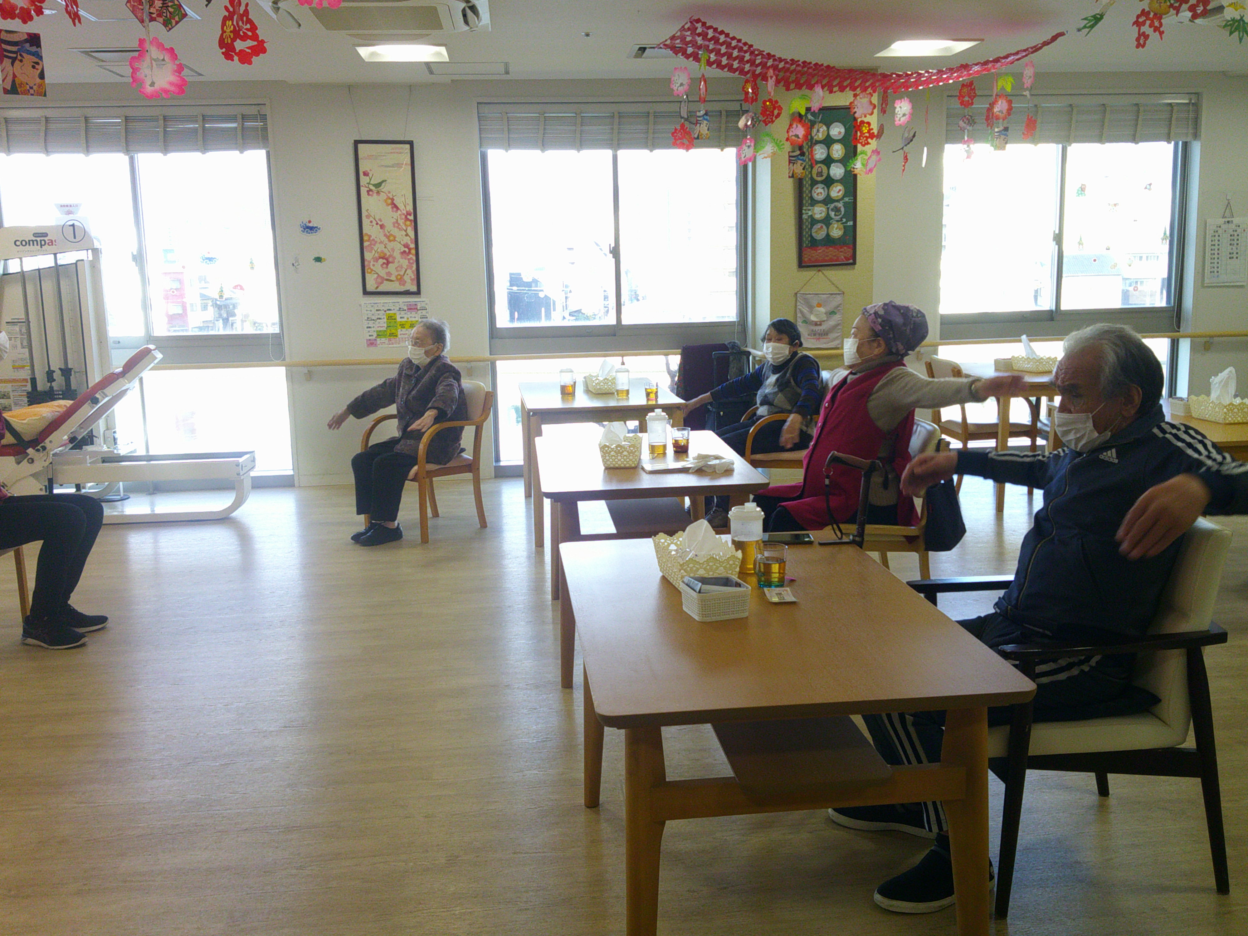 からだが伸びていいですね!と声を掛けたら、「気持ちいいよ~♪」と体を曲げながら答えてくれた入居者様でした(^^)