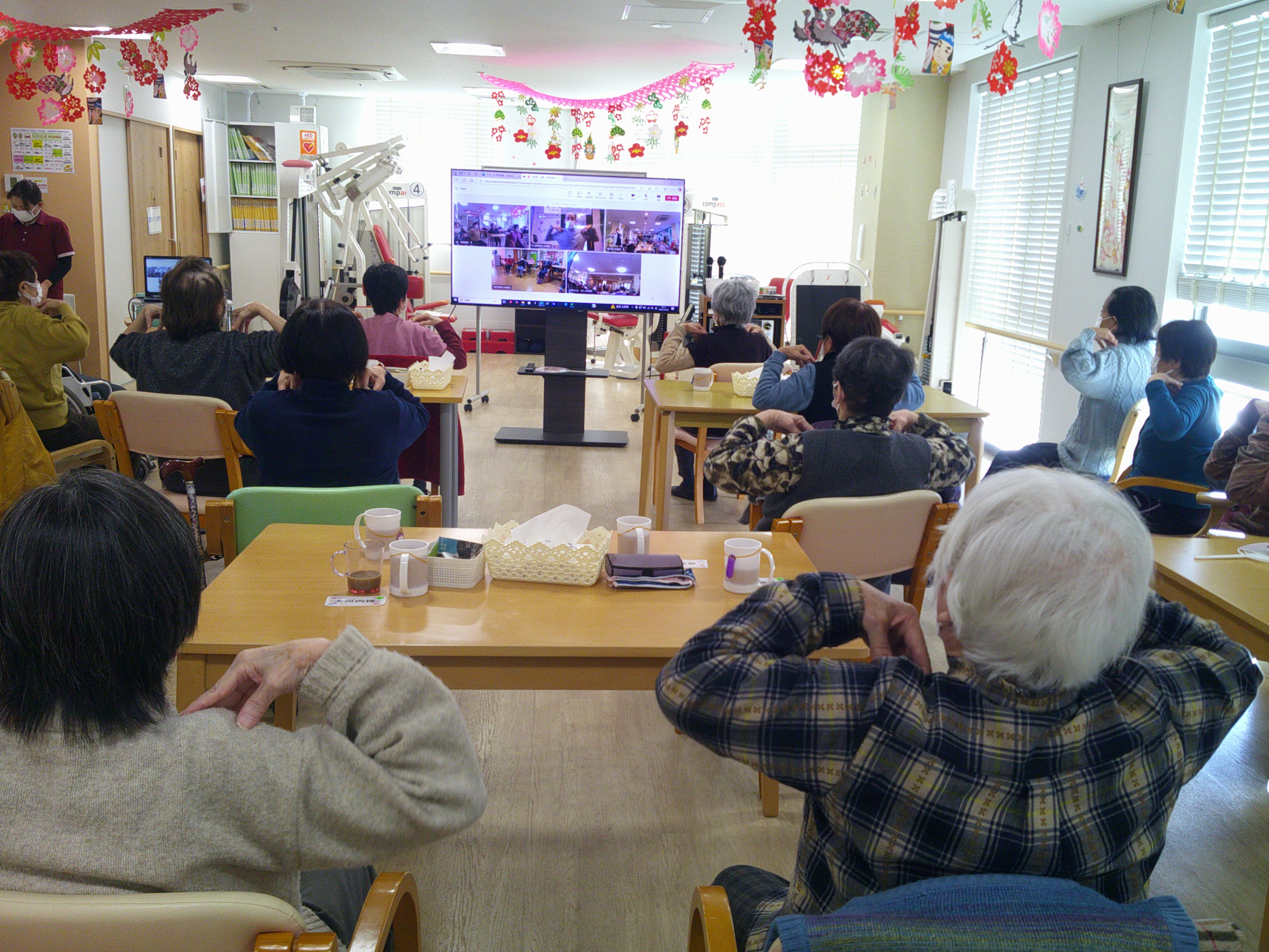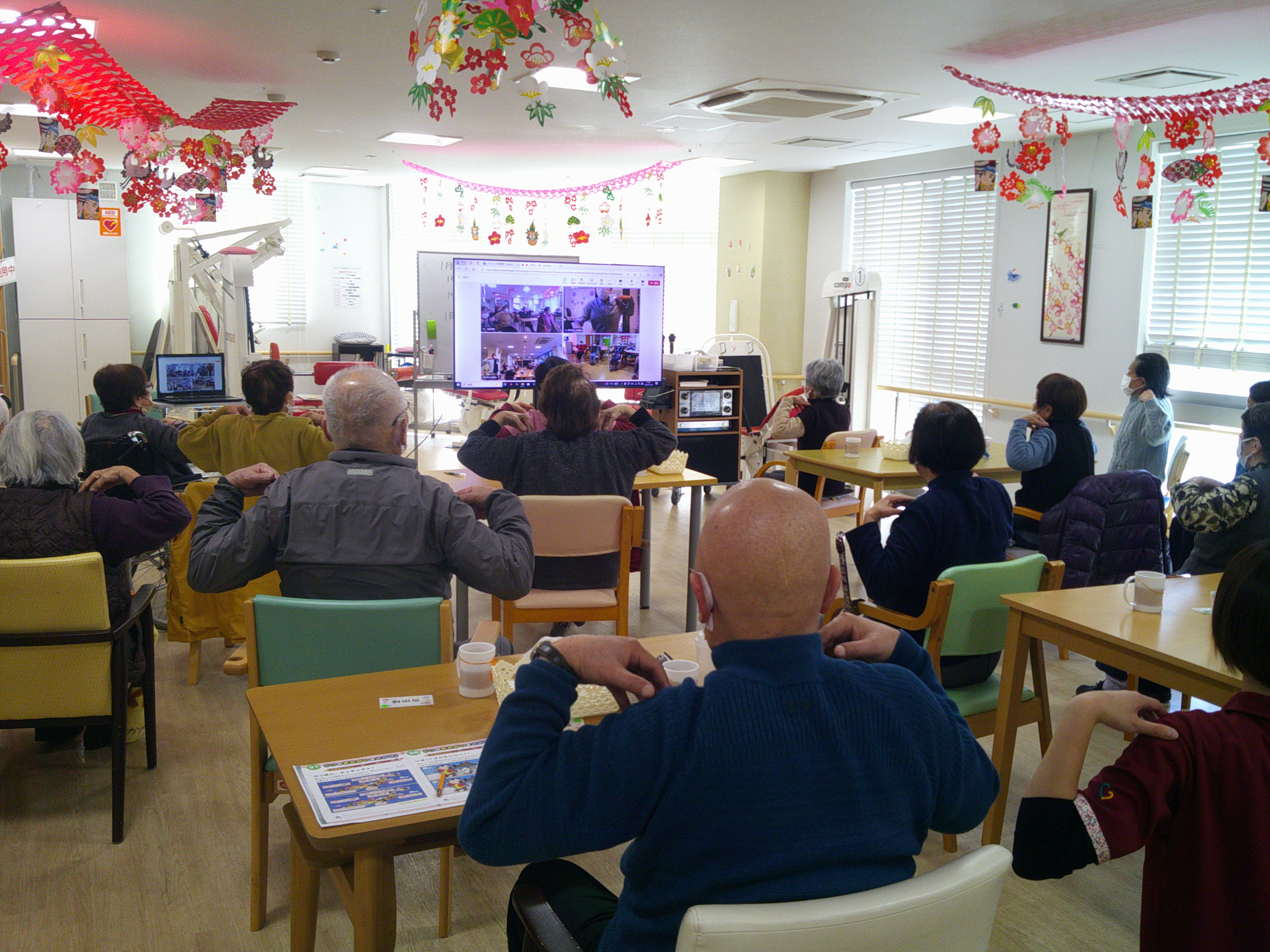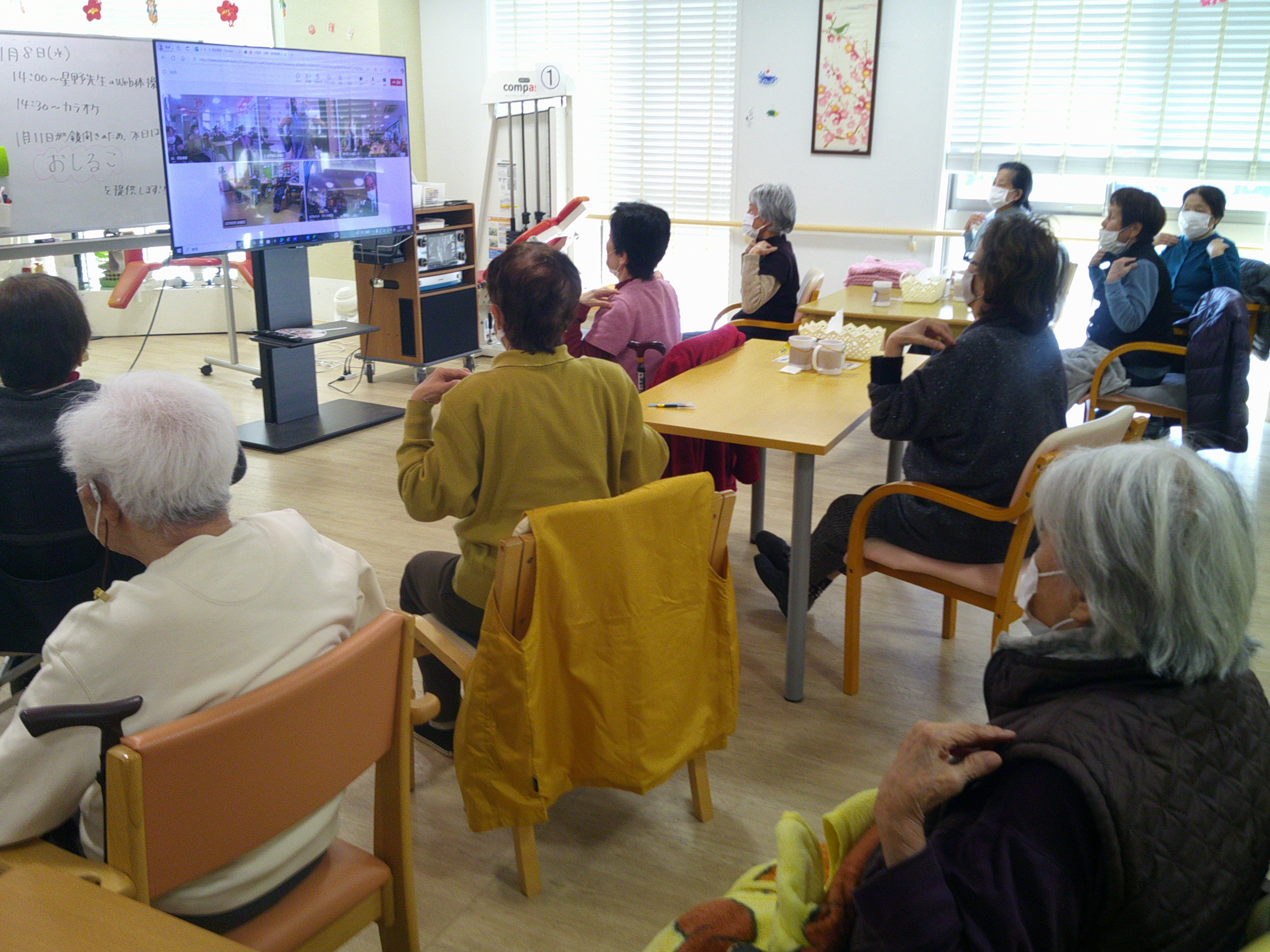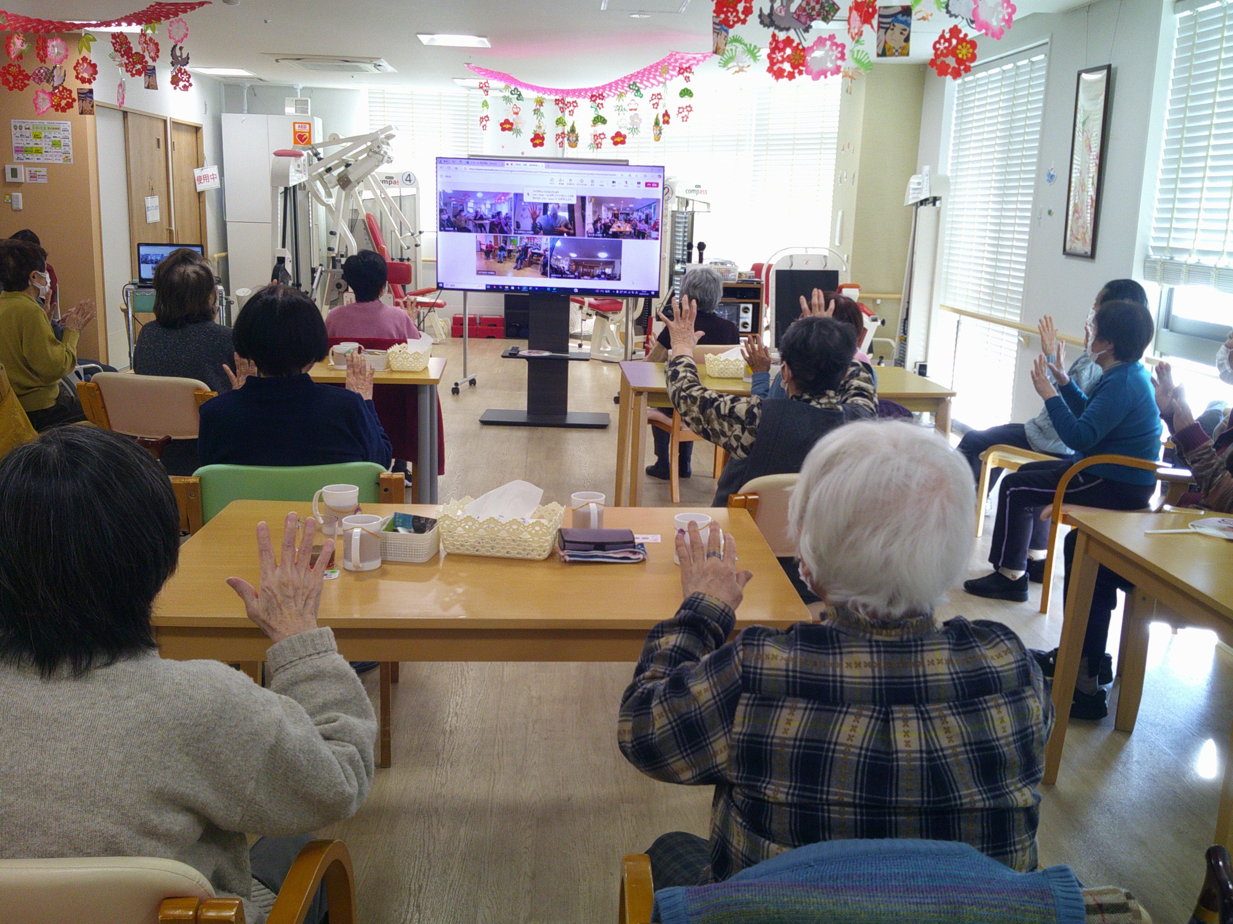WEBで他デイサービスとリモートで体操しました