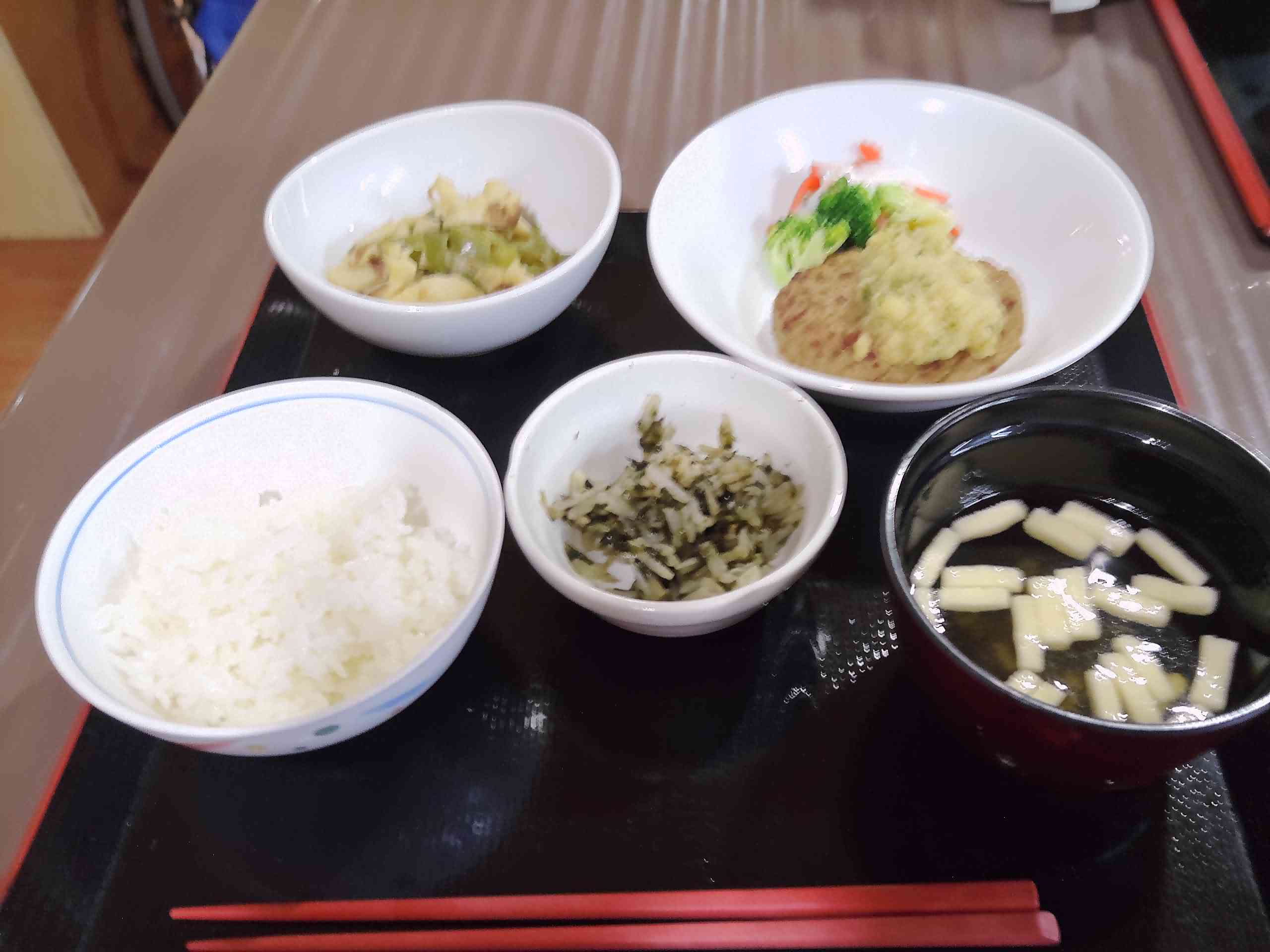 ある日の夕食は、和風ハンバーグ、ちくわとピーマンの味噌和え、等々でした。