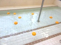 厄除けと体を温めるため、湯船に柚子をたくさん並べました!
