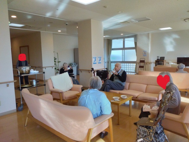本日1階多目的ホールで、『ぜんざいレクリエーション』を開催致しました\(^o^)/