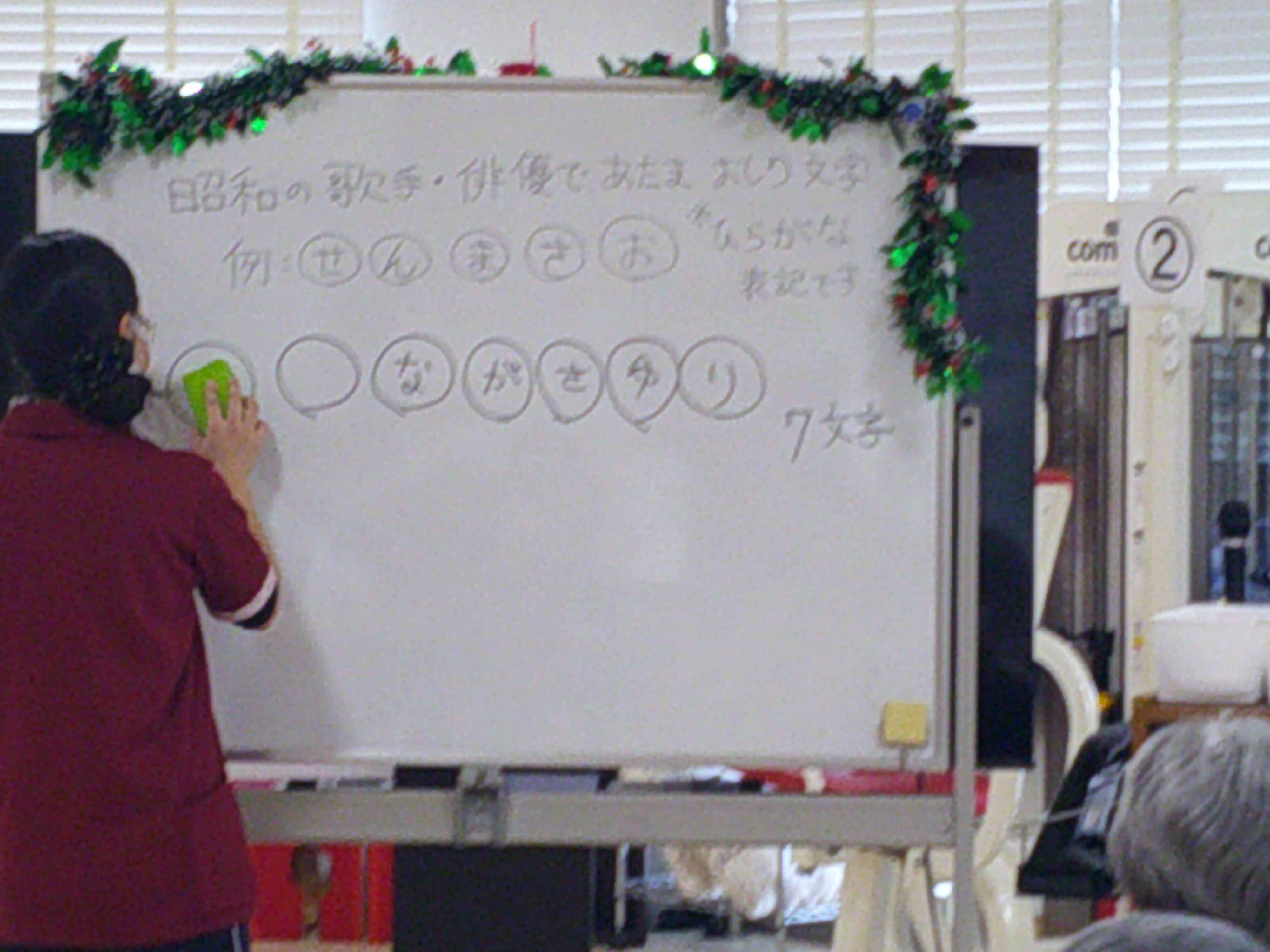 脳トレは昭和の歌手・俳優で頭 お尻文字クイズをしました。