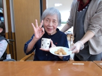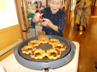 ご入居者様と共にホットプレートでポン・de・リングを焼き焼き…… _/(・ω・`)