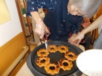 今日は2階のレクリエーションで、巷で話題の『焼きポン・de・リング』を作りました。
