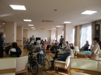 クリスマスの曲では、入居者様は鈴を鳴らし一緒に演奏しました。