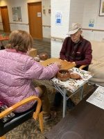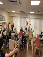 こんにちは、デイサービスです。本日はゲームレクで輪投げを行いました。10本の輪を投げていたただ来ましたが、いつもより少し距離を遠くしたので苦戦されていました(笑) 「手首が痛いから入らない」「10本も投げたら腕が痛くなる」と初めはおしゃっていましたが、いざ輪を持つと真剣な眼差しで10本投げ、「もう終わり!?」「もっと投げられるよ」と元気な姿を見せてくださいました。輪投げももちろんですがご謙遜もお上手です。