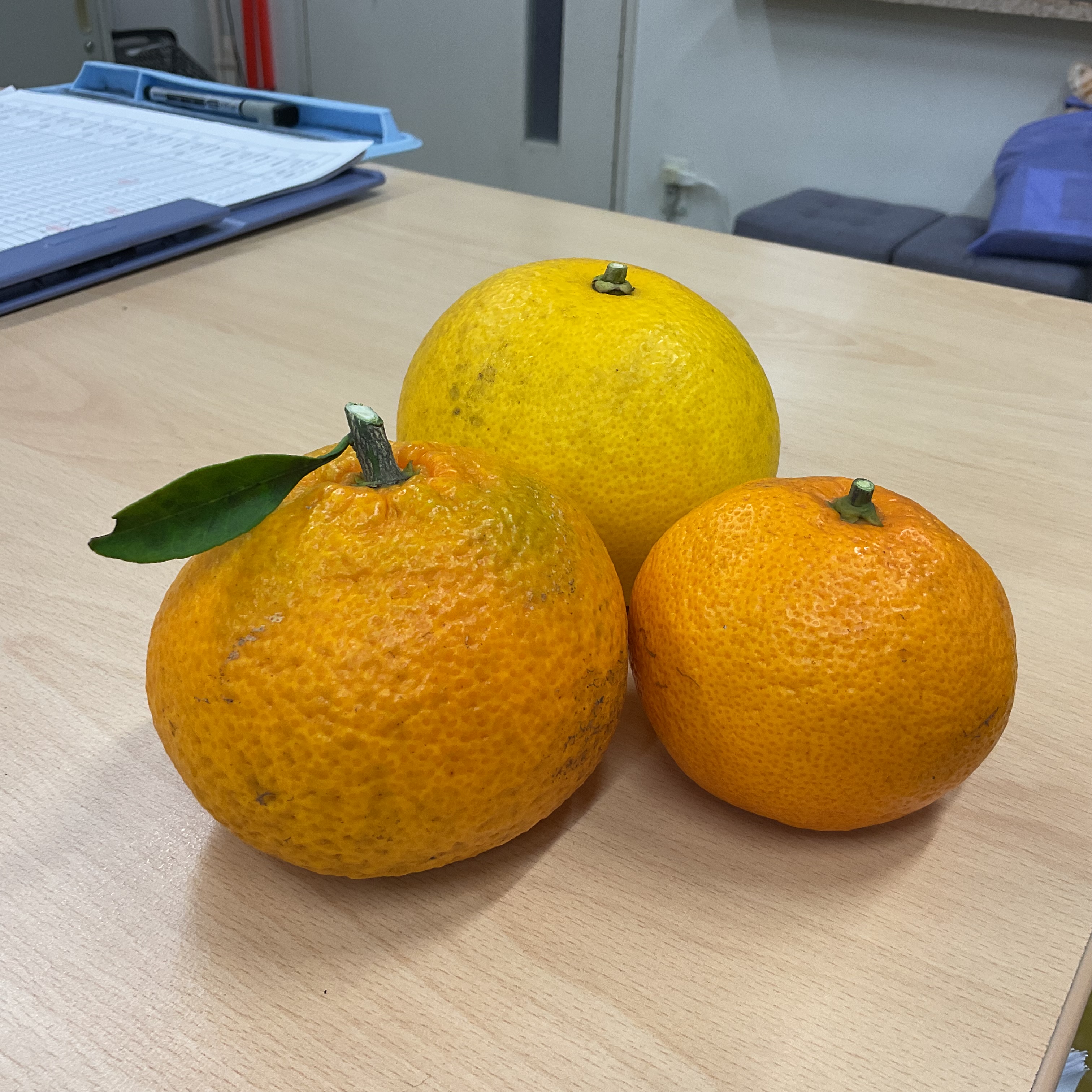 こんにちは、シーハーツ柏です。 裏庭で収穫した、シーハーツ産 甘夏とミカンになります。今年の猛暑を乗り切り、無事収穫できました。 事務所のスタッフで試食会。「皮は厚いけど、水分が多くて案外美味しいですね。」「程よい酸味がいいね。」と、コメントがありました。甘夏は文旦に似た酸味があり、少し収穫が早かったようです。もう少し熟すと、より美味しさupを確信します。 皮がやや厚いので、入所者様とシェアするのは難しいですが、立派な冬の収穫物となっています。