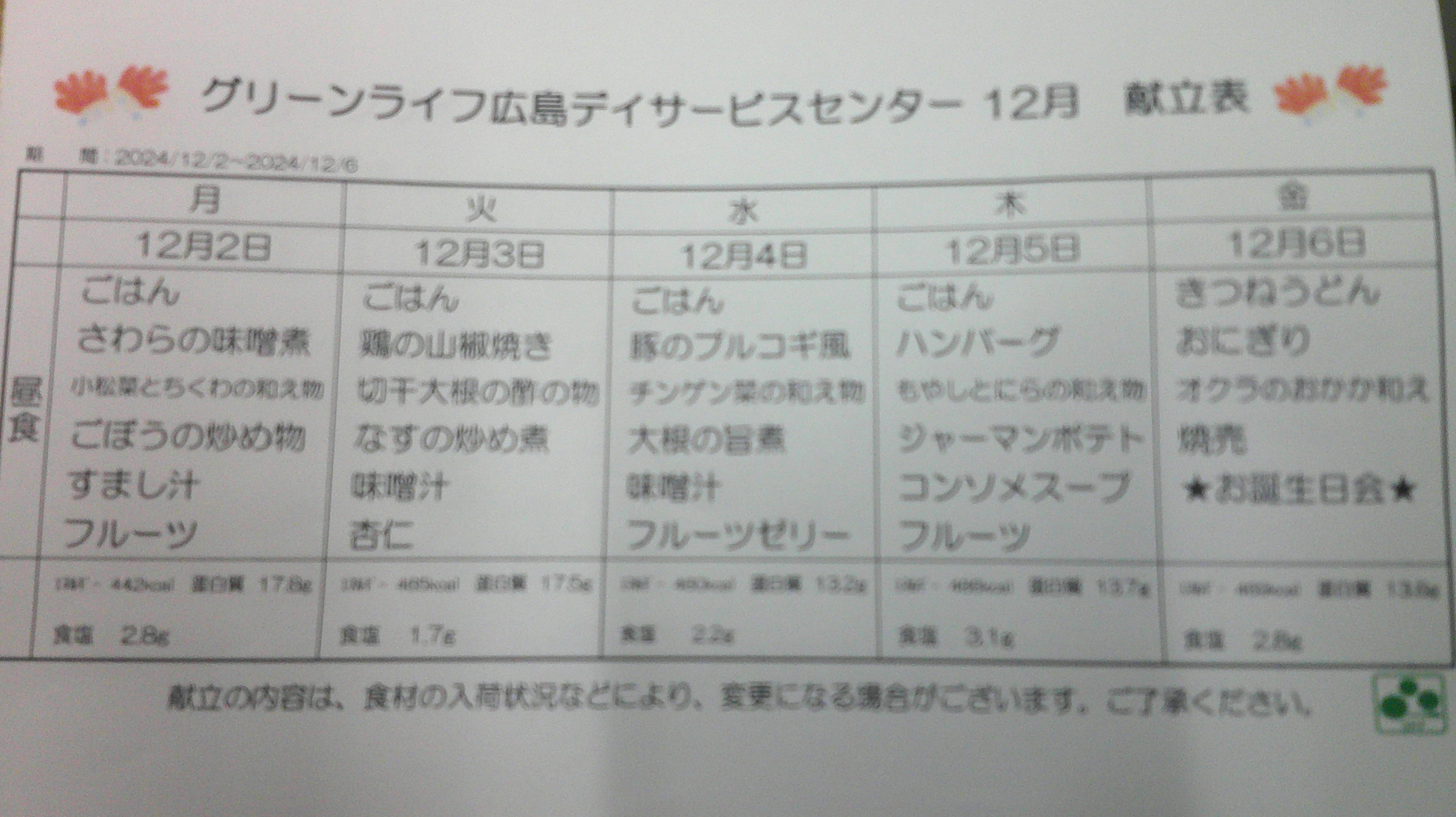 2024年12月02日グリーンライフ広島デイサービスセンター