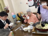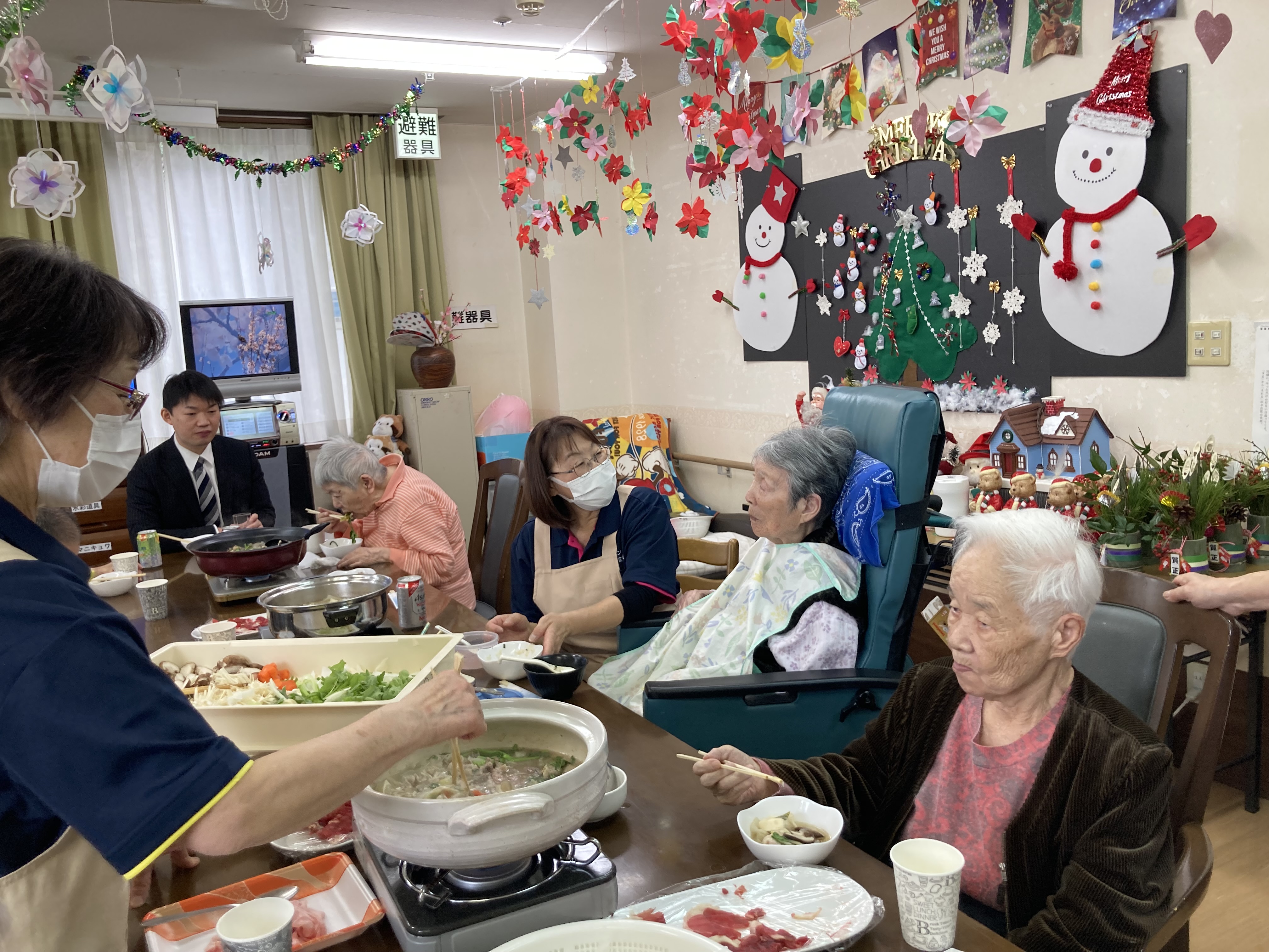 今年も残りわずかとなりました。今日は恒例の鍋忘年会を行いました。具材の一部はスタッフの家族が育てた立派な白菜などの野菜や、ジビエ肉・も用意しました。皆さん食欲旺盛で沢山召し上がられ美味しいと大喜びでした。来年も元気で過ごしていただきますように・・・・☘