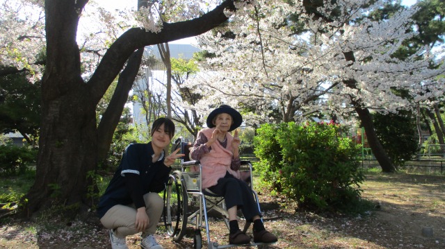 出来るだけ多くの入居者様に見て頂きたくて本日もお花見に行きました(^o^)/