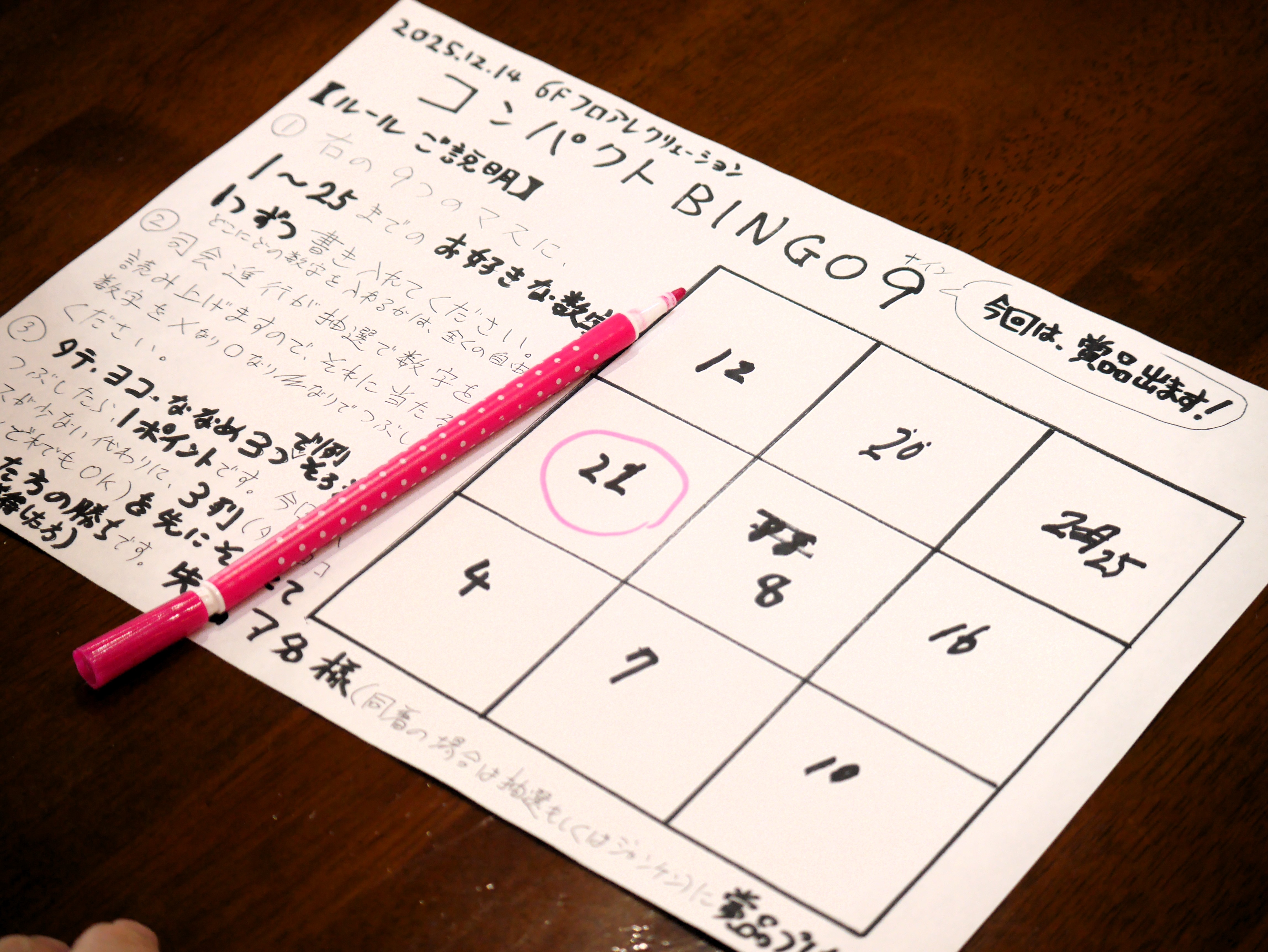 スタッフ考案の『コンパクトビンゴ9』という