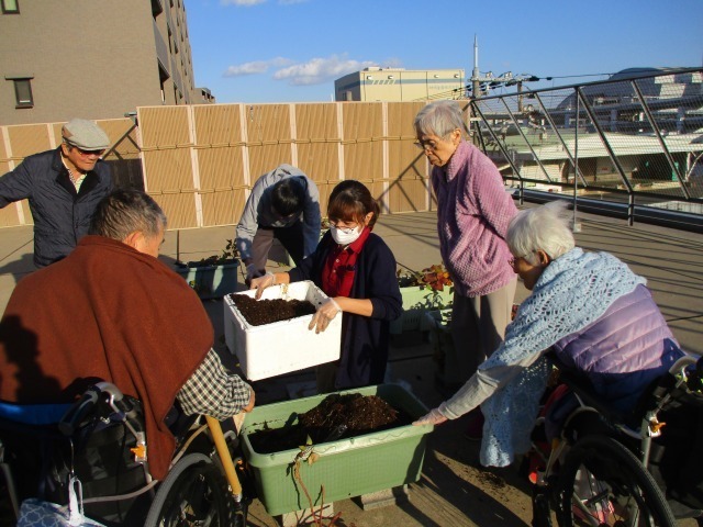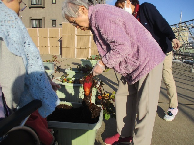 今日は屋上でみんな集まって【さつまいも】堀りにチャレンジしました‼寒さもなんのその、皆様とても頑張って掘ってくださいました(*^▽^*)とっても立派なさつまいもがこ~んなにたくさん採れました‼干している間に、何を作ろうか考えたいと思います(^o^)/