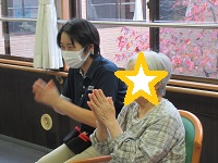 歌詞の書かれた紙を見て、一緒に歌ったり、手をたたかれ楽しまれてらっしゃいました😆