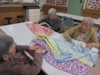 リハビリの様子を撮りに、6階に上がったところ、陽当たりの良いラウンジで折り紙を使っている入居者様を発見いたしました。