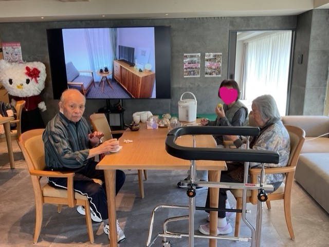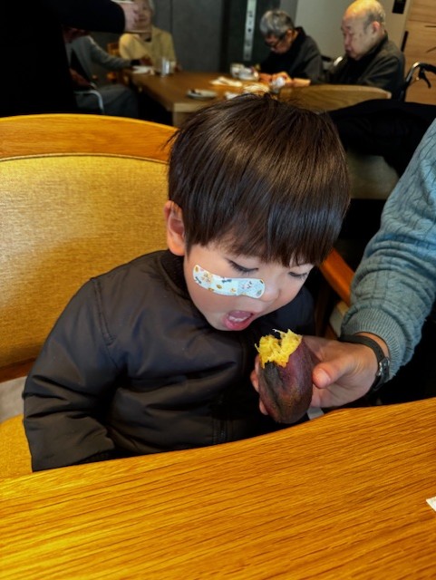 入居者様も居室フロアーから下りて、1階ロビーにて焼いもを召し上がりました。また、近隣住民の皆さまにも同じ場所で召し上がって頂きました。