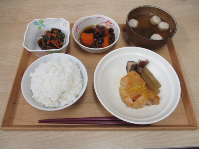 献立のメニューは、鱈の甘酢あんかけと豆腐の肉みそがけ、春雨の酢の物です。